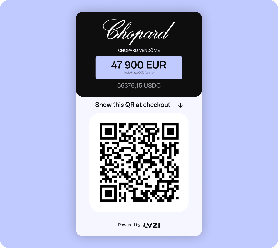Customers can pay using their favorite cryptocurrencies from their CEX or Wallet account including Binance PAY through our payment gateway. The LYZI solution is inter-connected to more than 500 wallets. The amount is instantly converted into euros and transferred to the merchant, ensuring a smooth payment experience without the risk of volatility.
